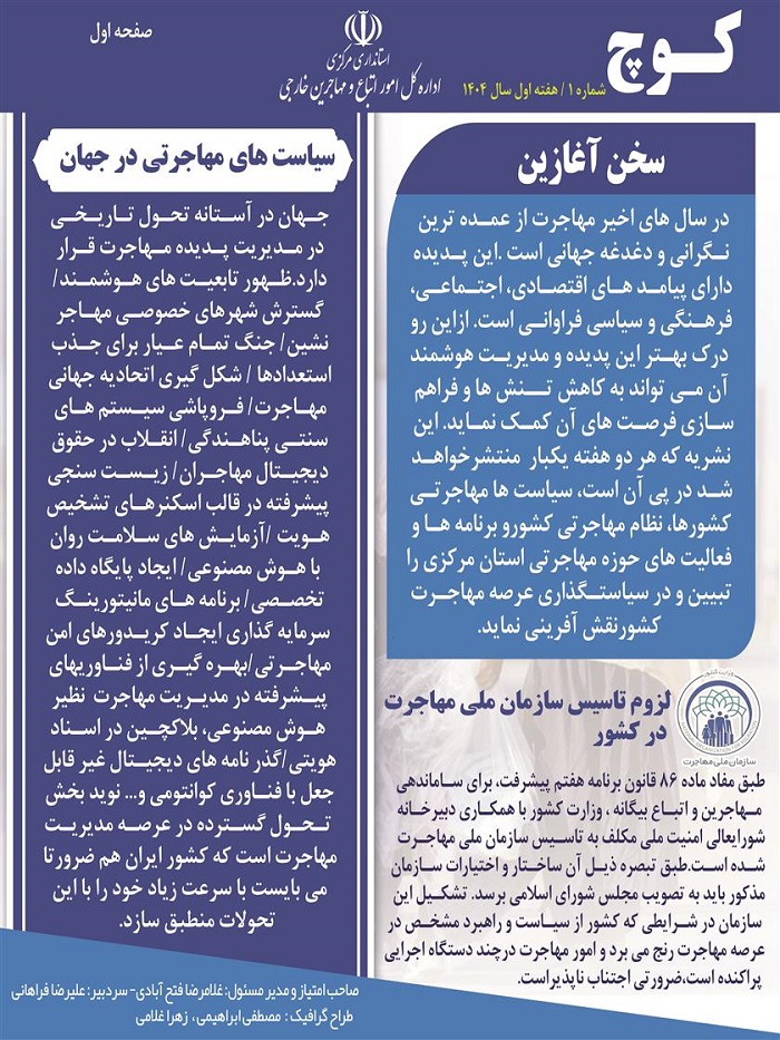 نشریه " کوچ "توسط دفتر امور اتباع و مهاجرین خارجی استان مرکزی منتشر گردید.