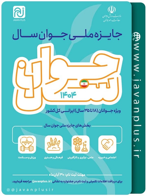 جایزه ملی جوان ۱۷ آبان ۱۴۰۴ | ۱۳:۲۴ کد : ۵۶۱۱۵ اطلاعیه ارسال به دیگران نام شما ایمیل شما ایمیل دریافتکننده ارسال انصراف تعداد بازدید:۹۶۱ جایزه ملی جوان سال ۱۴۰۴ فراخوان شرکت در جایزه ملی جوان سال ۱۴۰۴ منتشر شد.