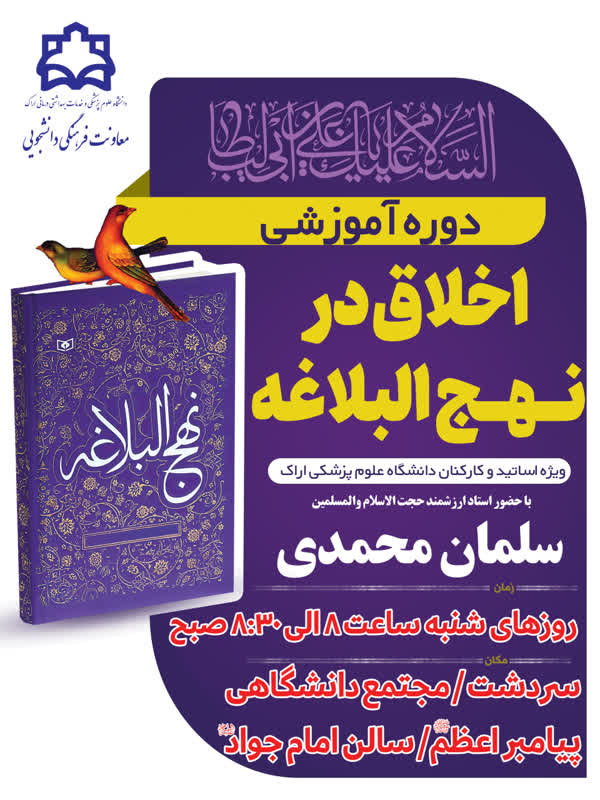 دانشگاه علوم پزشکی اراک ، دوره آموزشی اخلاق در نهج البلاغه را برگزار می نماید.